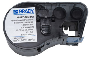 | Long Description | LABEL MAKER CARTRIDGE, HEAT SHRINK TYPE; B-342 POLYOLEFIN MATERIAL; WHITE COLOR; 0.75 INCH; 0.062 INCH MIN. WIRE DIAMETER; 0.15 INCH MAX. WIRE DIAMETER; 20 TO 10 AWG WIRE SIZE; 80 PER ROLL QUANTITY; BMP41/51/53 THERMAL TRANSFER PRINTER TYPE |