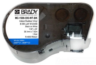 | Long Description | LABEL MAKER CARTRIDGE, PERMANENT ACRYLIC ADHESIVE TYPE; B-595 VINYL MATERIAL; 25 FOOT; 1.5 INCH; BMP 51/53 LABEL PRINTER PRINTER TYPE; WHITE TAPE COLOR; BLACK PRINT COLOR; ROHS COMPLIANT; RIBBON COLOR BLACK; FINISH GLOSS |