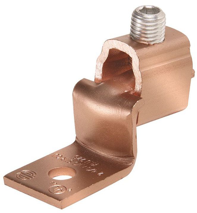 Long Description OFFSET CABLE LUG, SET SCREW TYPE; COPPER ALLOY MATERIAL; 1.56 INCH OVERALL LENGTH; 8 AWG SOLID/STRANDED MIN. CONDUCTOR SIZE; 2 AWG SOLID/STRANDED MAX. CONDUCTOR SIZE; COPPER CONDUCTOR MATERIAL; UL 467, UL (CANADA AND US) APPROVAL; 1 CONDUCTOR(S)