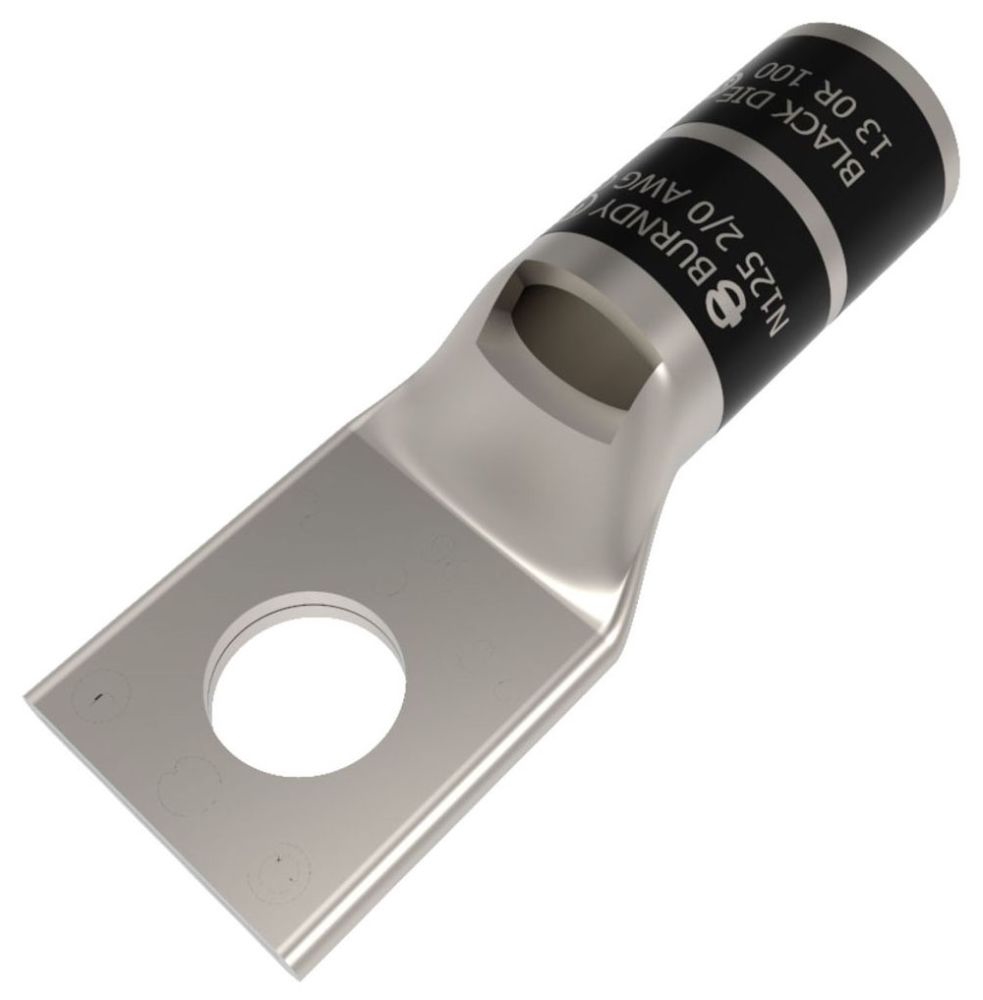 | Description Long | 2/0 AWG CU, One Hole, 1/4 Stud Size, Standard Barrel, Inspection Window, Internal Chamfer, Tin Plated, UL/CSA 90 Up to 35kV, BLACK Color Code, 13 Die Index. |