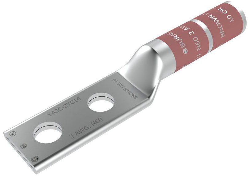 | Description Long | 2 AWG CU, Two Hole, 3/8 Stud Size, 1 Hole Spacing, Long Barrel Internal Chamfer, Tin Plated, UL/CSA, 90C, Up to 35kV, Brown Color Code, 10 Die Index. |