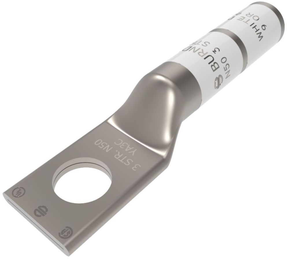 | Description Long | 3 AWG CU, One Hole, 1/2 Stud Size, Long Barrel, Internal Chamfer, Tin Plated, UL/CSA, 90C, Up to 35kV,WHITE Color Code, 9 Die Index. |