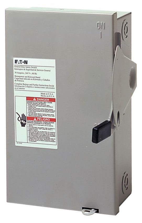 | Long Description | SAFETY SWITCH, GENERAL DUTY SAFETY TYPE; 6.38 INCH WIDTH X 6.88 INCH DEPTH X 10.69 INCH HEIGHT SIZE; PAINTED FINISH; STEEL ENCLOSURE MATERIAL; 4 WIRE(S); UL 98 APPROVAL; NEMA 1 ENCLOSURE; 30 AMP CURRENT RATING |