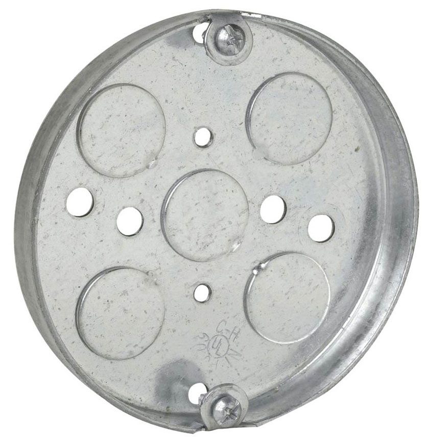 | Long Description | STEEL CEILING PAN, CEILING FAN/FIXTURE TYPE; STEEL MATERIAL; 1/2 INCH; ROUND SHAPE; UL 514A/B/C APPROVAL; 4 INCH DIAMETER; 50 STANDARD PACKAGE; 6 CUBIC INCH CAPACITY; (5) 1/2 INCH BOTTOM KNOCKOUT SIZE; 5 KNOCKOUT(S); (5) BOTTOM KNOCKOUT LOCATION |