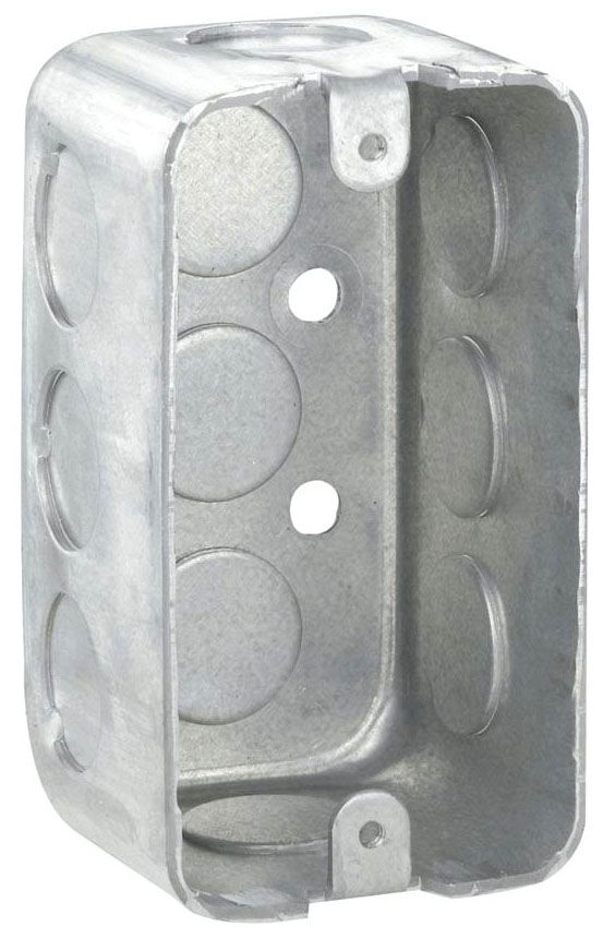 | Long Description | STEEL UTILITY BOX, UTILITY TYPE; STEEL MATERIAL; 2-1/8 INCH; 4 INCH; 2-1/8 INCH; 1 GANG(S); UL 514A/B/C APPROVAL; 50 STANDARD PACKAGE; 14.5 CUBIC INCH CAPACITY; (3) 1/2 INCH BOTTOM, (6) 3/4 INCH SIDE KNOCKOUT SIZE; 9 KNOCKOUT(S) |