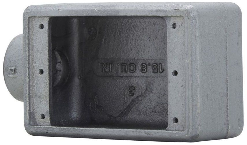 | Long Description | FS CAST DEVICE BOX, ELECTROGALVANIZED ALUMINUM ACRYLIC PAINTED IRON FERALOY MATERIAL; 2-3/4 INCH; 5-9/32 INCH; 1-7/8 INCH; SHALLOW SHAPE; 1 INCH HUB SIZE; 1 HUB(S); 1 GANG(S); UL 514A, CSA 22.2 APPROVAL; SURFACE MOUNTING; (2) LUGS MOUNTING HARDWARE |