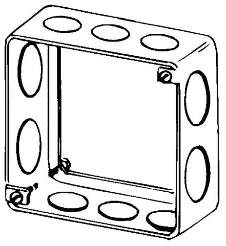 | Long Description | SQUARE BOX EXTENSION RING, SQUARE BOX EXTENSION RING TYPE; PRE-GALVANIZED G60 0.0625 INCH AISI/SAE 1008 STEEL MATERIAL; 4 INCH; 4 INCH; 1-1/2 INCH; UL 514A APPROVAL; 21 CUBIC INCH CAPACITY; (6) 1/2 INCH SIDES, (4) 3/4 INCH SIDES KNOCKOUT SIZE |