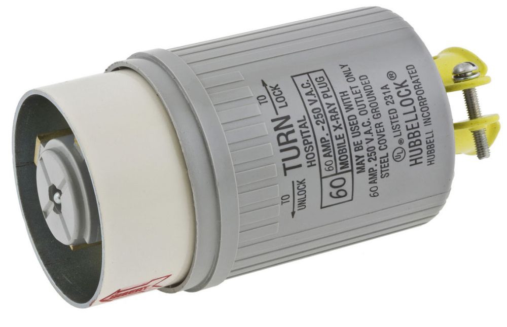 | Product Name | Locking Devices, Hubbellock, Mobile X-Ray, Male Plug, 60A 250V, 2-Pole 3-Wire Grounding, Non NEMA, ScrewTerminal, Gray |