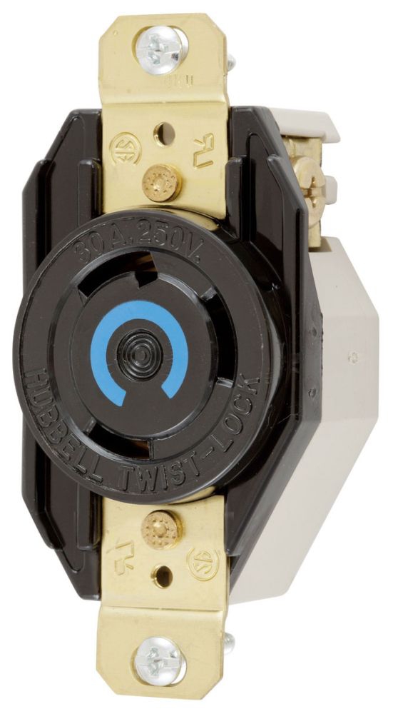 | Product Name | Locking Devices, Twist-Lock, Single Flush Receptacle, 30A, 250V AC, 2 Pole, 3 Wire Grounding, NEMA L6-30R, Nylon face, Ring terminal connection |