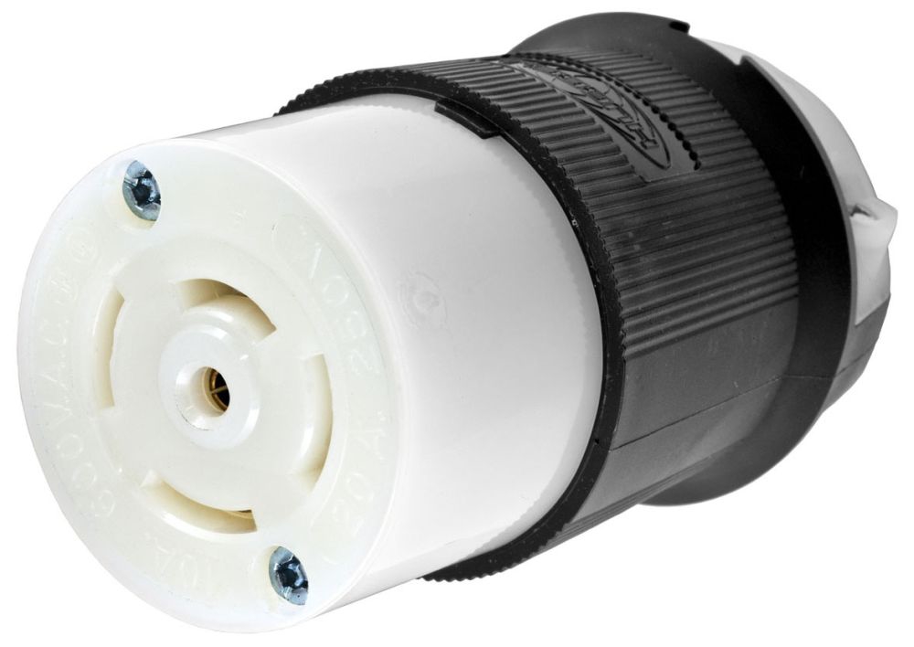 | Description Short | Locking Devices, Twist-Lock, Industrial, Female Connector Body, 20A 250V DC/10A 600V AC, 4-Pole 5-Wire Grounding, Non-NEMA, Screw Terminal, Black and White |