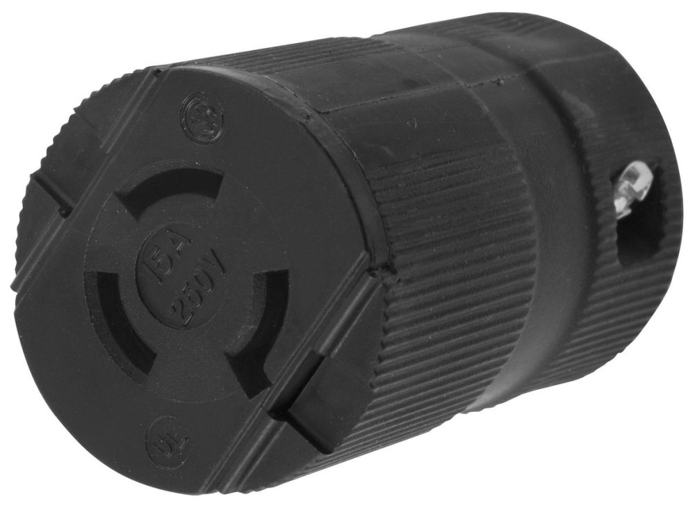 | Product Name | Locking Devices, Twist-Lock, Valise, Female Connector Body, 15A 250V, 2-Pole 3-Wire Grounding, L6-15R, Screw Terminal, Black |
