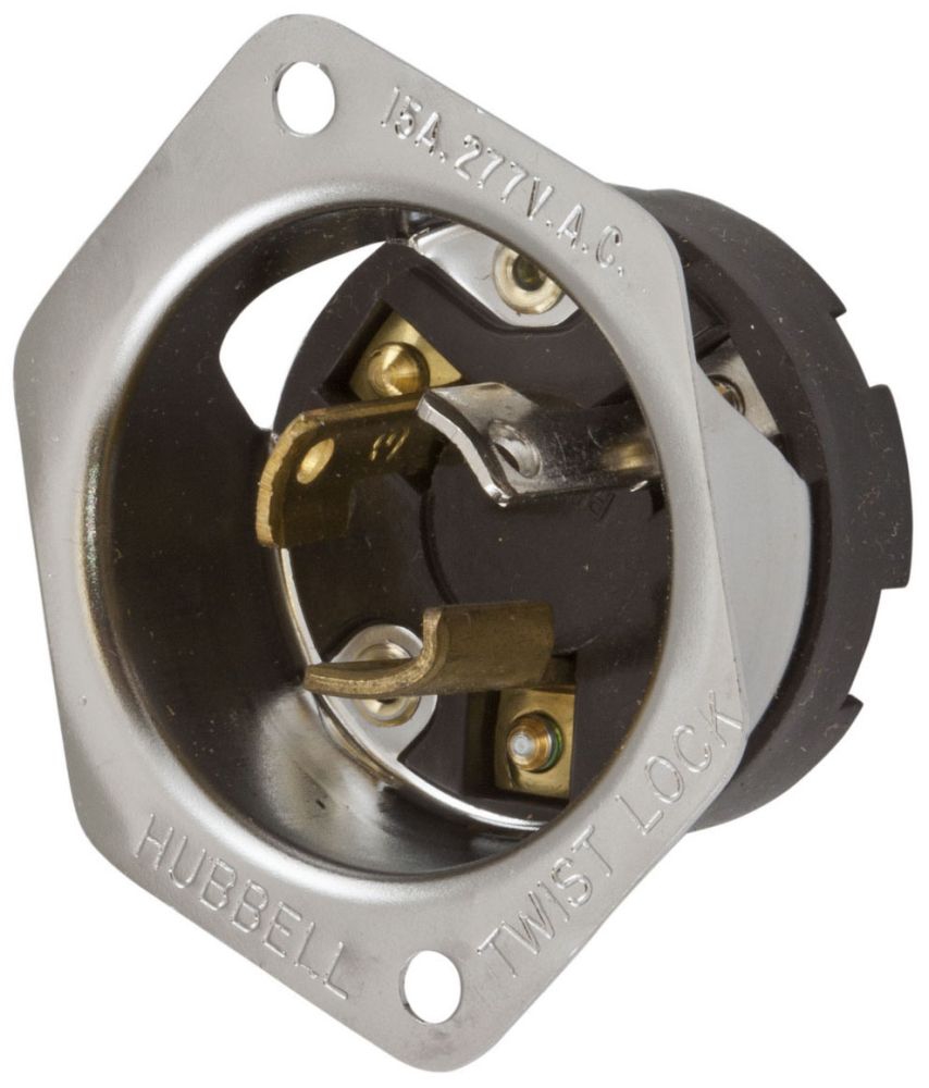 | Product Name | Locking Devices, Twist-Lock, Industrial, Flanged Inlet, 15A 277V AC, 2-Pole 3-Wire Grounding, L7-15P, Screw Terminal, Stainless Steel |