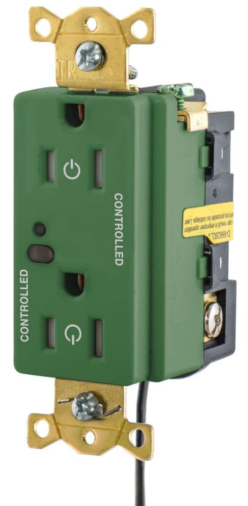 | Product Name | Straight Blade Devices, Logic Load Control Receptacles, Fully Controlled Industrial Grade, 15A 125V, 2-Pole 3-Wire Grounding, 5-15R, Green. |