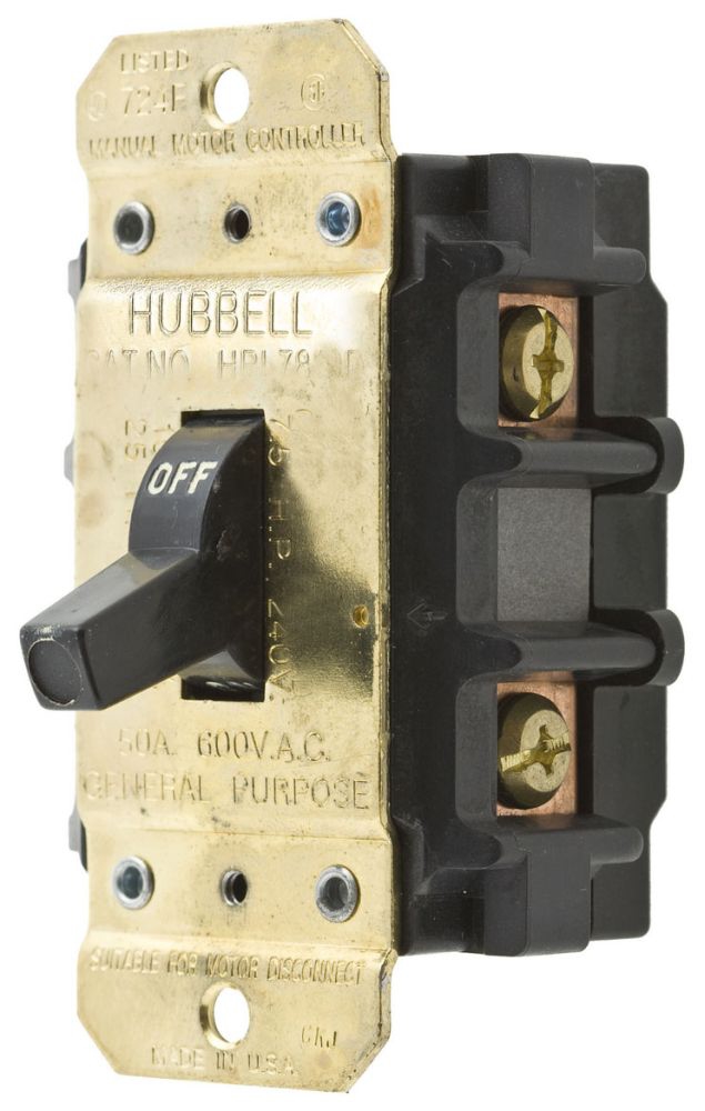 | Product Name | Switches and Lighting Controls, Industrial Grade, Manual Motor Controllers, Motor Disconnects, Two Pole, 50A 600V AC, Side Wired Only |