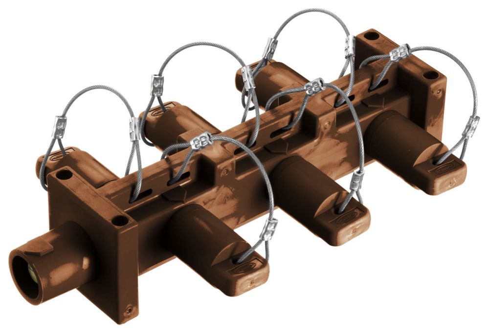 Description Long Heavy Duty Products, Single Pole Devices, Industrial Grade, Male to 6) Females, Distribution Block, 400A 600V AC/DC, Single Conductor, Pre-Wired, Brown