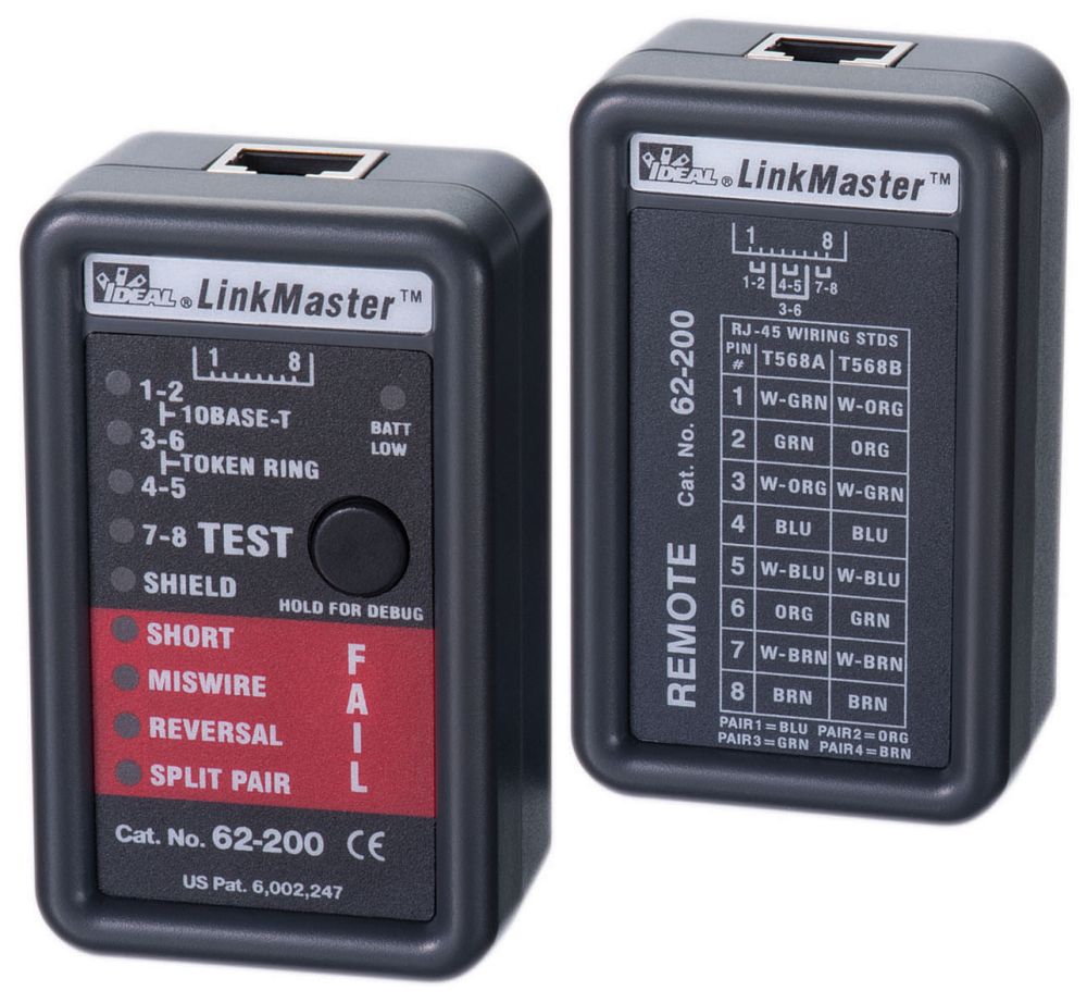 | Long Description | CABLE TESTER, SHORT, OPEN, MISWIRE, REVERSAL, SPLIT PAIR TYPE; SHIELDED/UNSHIELDED CABLE TYPE; LED DISPLAY TYPE; VOICE, DATA, VIDEO APPLICATION; RJ45 CONNECTOR TYPE; 6 VOLT BATTERY VOLTAGE; LINKMASTER BRAND |