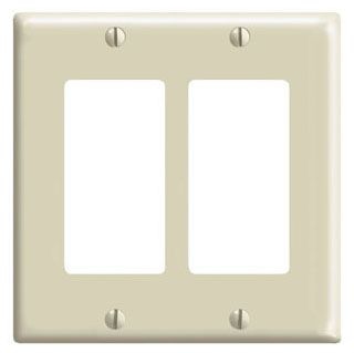 Long Description WALL PLATE, THERMOSET PLASTIC MATERIAL; SMOOTH FINISH; IVORY COLOR; (2) DECORA/GFCI CONFIGURATION; 2 GANG(S); STANDARD DESIGNATED SIZE; DECORA [R] BRAND; OVERALL DIMENSION 4.56 INCH WIDTH X 4.5 INCH HEIGHT; MOUNTING TYPE DEVICE MOUNT