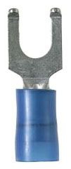 Long Description INSULATED FLANGED FORK TERMINAL, FLANGED, FUNNEL ENTRY TYPE; BLUE COLOR; 18 AWG MIN. CONDUCTOR SIZE; 14 AWG MAX. CONDUCTOR SIZE; UL 486A/486B, CSA C22.2 APPROVAL; 221 DEG F TEMPERATURE RATING; 1000 STANDARD PACKAGE; #10 STUD SIZE