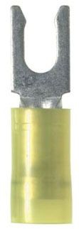 Long Description INSULATED LOCKING FORK TERMINAL, LOCKING TYPE; YELLOW COLOR; 12 AWG MIN. CONDUCTOR SIZE; 10 AWG MAX. CONDUCTOR SIZE; UL 486A/486B, CSA C22.2 APPROVAL; 221 DEG F TEMPERATURE RATING; 50 STANDARD PACKAGE; 1/4 INCH STUD SIZE; NYLON INSULATED INSULATION TYPE