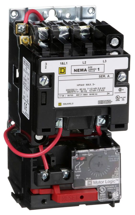 NEMA motor starter, Type S, nonreversing, Size 1, 27A, 10HP at 460VAC, up to 100kA SCCR, 3 phase, 3 pole, Motor Logic, 120VAC coil, open [TAA]
